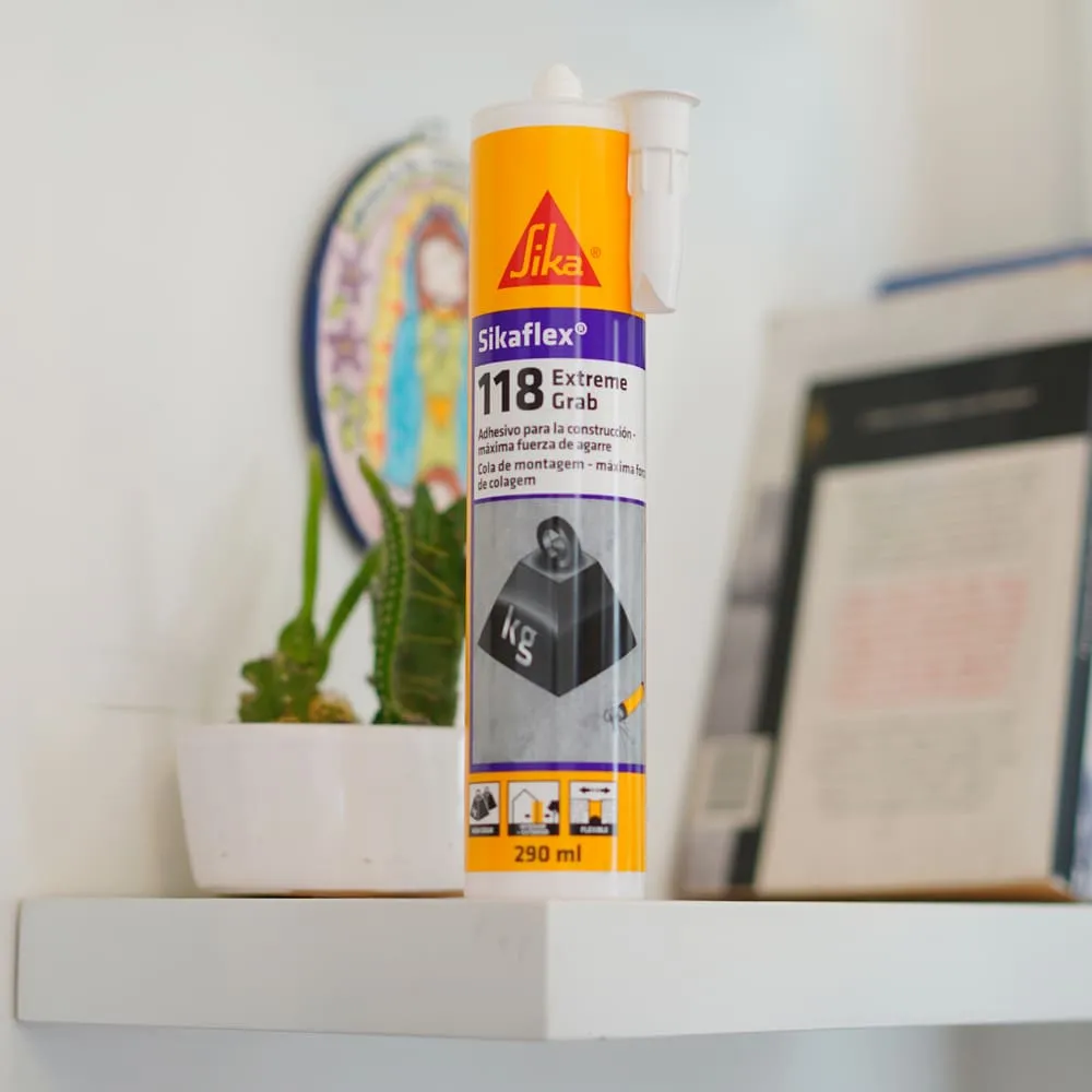 El Adhesivo Sikaflex 118 Extreme Grab 290ml es la solución perfecta para fijar objetos pesados de forma permanente en interiores y exteriores. Con un muy alto agarre inicial y una fórmula fuerte y elástica, este adhesivo de la marca Sika garantiza una unión duradera y resistente. Su baja emisión lo hace seguro de usar, y su versatilidad lo convierte en ideal para hormigón, cerámicas, metales, vidrios y más. Mantén tus proyectos seguros y estables con el Adhesivo Sikaflex 118 Extreme Grab.