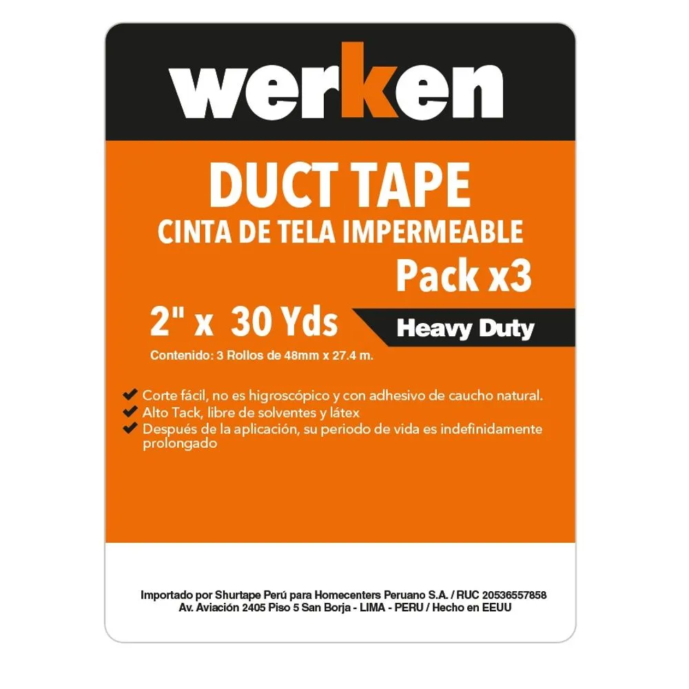 Cinta Duct Tape Werken 2″ x 30 Yds Pack x 3u.