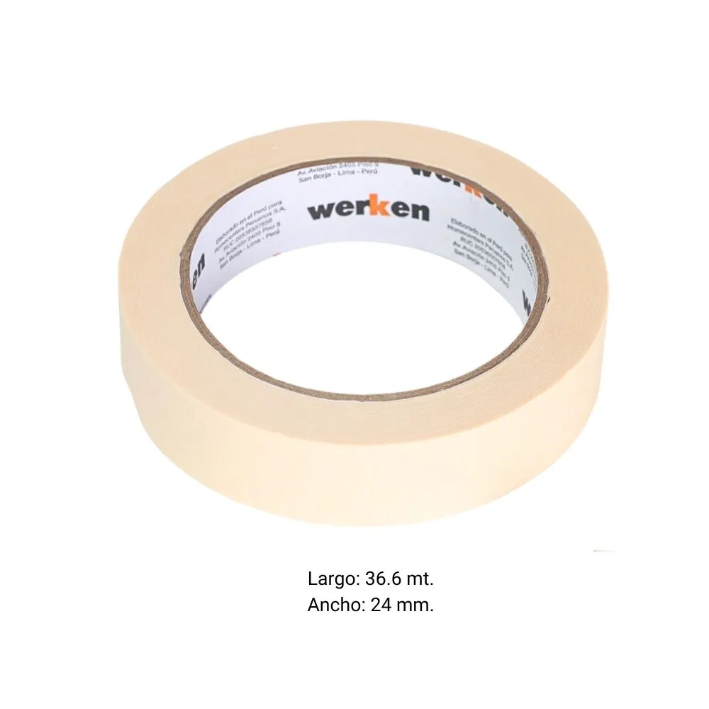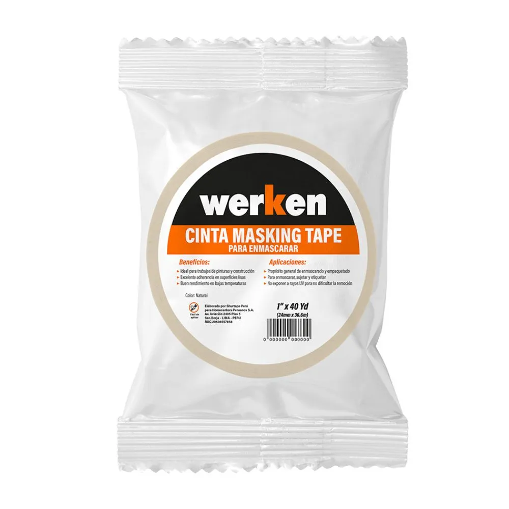 La Cinta Masking Tape Werken Blanco es ideal para el hogar, escuela, construcción e industria. Con una longitud de 36.6 m y un ancho de 13 cm, esta cinta estándar en la industria de la pintura ofrece una adhesión media que evita daños en paredes y no se daña al pegarse con sí misma. Su material de caucho termoplástico garantiza durabilidad y resistencia. Almacénala en un lugar fresco y seco para mantener su calidad. Perfecta para enmascarar, sujetar, etiquetar y pintar en madera, metal, plástico y paredes.