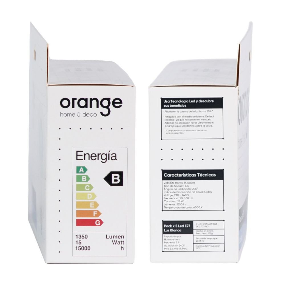 Ilumina tu hogar con los Focos LED E27 15W Luz Fría de Orange. Estos focos de excelente calidad y eficiencia energética te brindarán una iluminación potente y duradera.