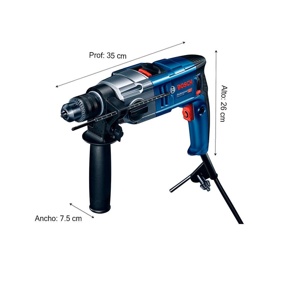 Potente y versátil, el Taladro Bosch GSB 20-2RE 1/2» en color azul es la herramienta ideal para tus proyectos de perforación. Con una potencia de 800W, este taladro cuenta con características avanzadas como velocidad variable, gatillo con perilla reguladora de velocidad y selector de sentido de giro.